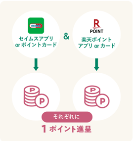 セイムスカードは、プラスでお得になることも。楽天ポイントも同時に貯められます。