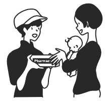 お薬を受取る来局や宅配、コンビニの「お薬受取りロッカー」等、指定の方法でお薬を受取ります。