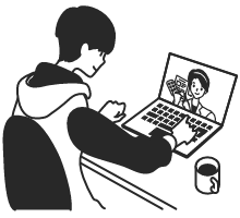 受ける指定の日時に、パソコン、スマートフォン等を用いたビデオチャットを繋ぎ、オンラインで服薬指導を受けます。